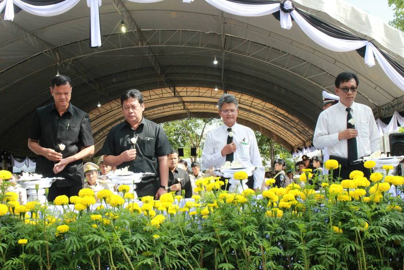 กฟผ.เขื่อนบางลาง ร่วมพิธีวางดอกไม้จันทน์ ในพิธีถวายพระเพลิงพระบรมศพ เมื่อวันที่ 26 ตุลาคม 2560 นายคติ ชนนีบำรุง ช่างระดับ 11 ทำหน้าที่หัวหน้ากองโรงไฟฟ้าเขื่อนบางลาง พร้อมด้วยคณะผู้บริหารและผู้ปฏิบัติงานกองโรงไฟฟ้าเขื่อนบางลาง เข้าร่วมพิธีถวายดอกไม้จันทน์ ในพิธีถวายพระเพลิงพระบรมศพ พระบาทสมเด็จพระปรมินทรมหาภูมิพลอดุลยเดช ณ วัดเนรัญชราวาส อำเภอบันนังสตา จังหวัดยะลา พร้อมกันนี้ทางกองโรงไฟฟ้าเขื่อนบางลาง ได้สนับสนุนน้ำดื่ม จำนวน 300 ขวด เพื่อใช้ในพิธีและในโอกาสนี้ทางกองโรงไฟฟ้าเขื่อนบางลางได้จัดนิทรรศการแสดงถึงพระราชกรณียกิจของพระบาทสมเด็จพระปรมินทรมหาภูมิพลอดุลยเดชและโครงการพระราชดำริในพื้นที่จังหวัดยะลา และพื้นที่เขื่อนบางลางด้วย