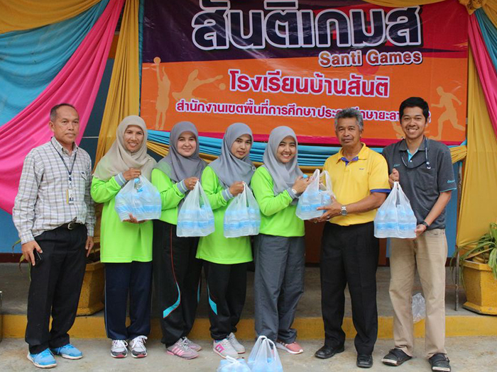 เมื่อวันที่ 3 เดือนธันวาคม 2561 นายกำซานี มะเร๊ะ หัวหน้างานประชาสัมพันธ์และชุมชนสัมพันธ์ กองโรงไฟฟ้าเขื่อนบางลาง พร้อมผู้ปฏิบัติงานฯ ร่วมพิธีเปิดกิจกรรมการแข่งขันกีฬาภายใน “สันติเกมส์” ของโรงเรียนบ้านสันติ หมู่ที่ 2 ตำบลเขื่อนบางลาง อำเภอบันนังสตา จังหวัดยะลา โดยมีการแข่งขันกีฬาระหว่างเด็กนักเรียน ผู้ปกครองนักเรียน เจ้าหน้าที่ชุดกองกำลังในพื้นที่และหน่วยงานข้างเคียง ซึ่งทางโรงเรียนมีวัตถุประสงค์เพื่อช่วยเสริมสร้างให้ร่างกายแข็งแรง ห่างไกลจากโรคภัย และเสริมสร้างพัฒนาการด้านกีฬาให้กับเด็กนักเรียนและเสริมสร้างความสัมพันธ์ที่ดีระหว่างโรงเรียนกับชุมชนและหน่วยงานข้างเคียงด้วย โดยบรรยากาศของการจัดกิจกรรมกีฬาภายในครั้งนี้ มีความอบอุ่น สนุกสนาน และโอกาสนี้ ทาง กฟผ. เขื่อนบางลาง ได้สนับสนุนน้ำดื่ม จำนวน 200 ขวด เพื่อใช้ในกิจกรรมครั้งนี้ โดยมีนางสาวยามีล๊ะ หะรง ผู้อำนวยการโรงเรียนบ้านสันติ เป็นผู้รับมอบ ณ โรงเรียนบ้านสันติ |